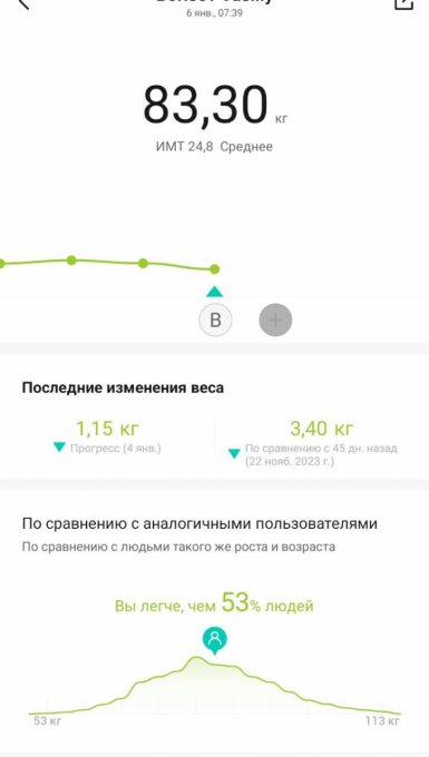 вчера на весах цифра заметно уменьшилась и показала 83 с