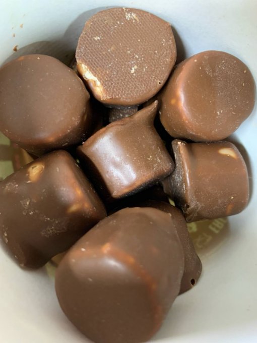 Я буквально напала сегодня на эти кокосовые конфеты, и решила их есть, пока желание не спадет — во, я рисковая)) В итоге после четвертой стало уже не так прикольно, а через полчаса у меня опять заболел живот. Судя по всему, такая реакция вчера была именно на них. Но ничего, 4 конфеты еще никому не вредили, зато я вычислила +-, от какого типа продуктов меня раздувает по жизни 🤣