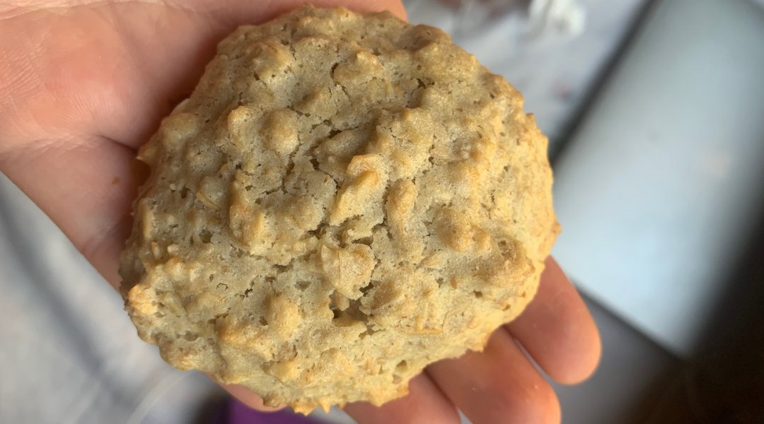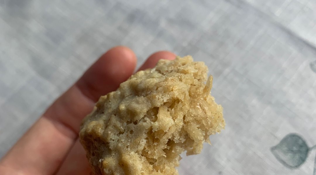 Сливочное масло прямо из холодильника нарезать кубиками. Хорошенько растереть с сахаром, яйцами. Перемешать с овсяными хлопьями (у меня самые простые за 20р). Добавить муку для склейки.