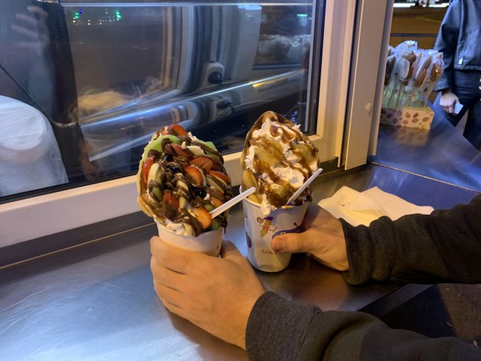 Проснулась после вчерашней полуночной учебы часов в 12, меня накормили вкуснейшей овсянкой как в детстве и мы все равно решили поехать в музей, перед ним перекусила в кафешке, но осилила половину порции и остаток взяла с собой. Погуляли в галерее пару часов, очень интересно! Вдохновилась) Потом муж решил сделать сюрприз и отвел меня во въетнамский ресторанчик) Там было очень остро и сытно 😁 Мы долго гуляли в парке вокруг, и взяли по бельгийской вафле со взбитыми сливками и топпингами всякими) Короче, день просто ну кайф!! После такого отдыха и праздника живота не жалко неделю и поработать и поучиться в интенсивном режиме, как я обычно и живу))