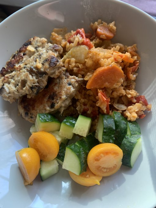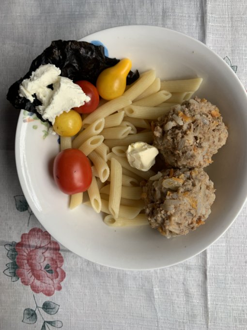 с тефтелями + терн. На ужин были три манты с тыквой и один