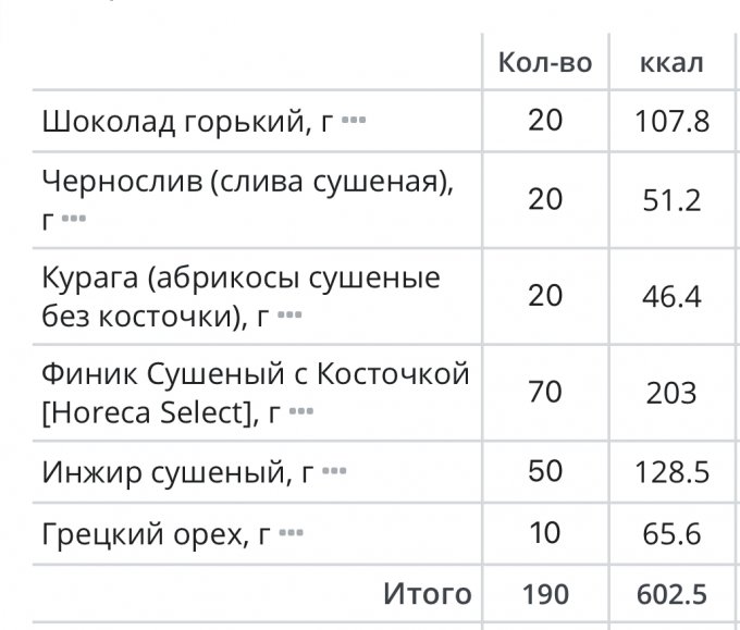 | Кол-во | Калории | Белки | Жиры | Углеводы | |
