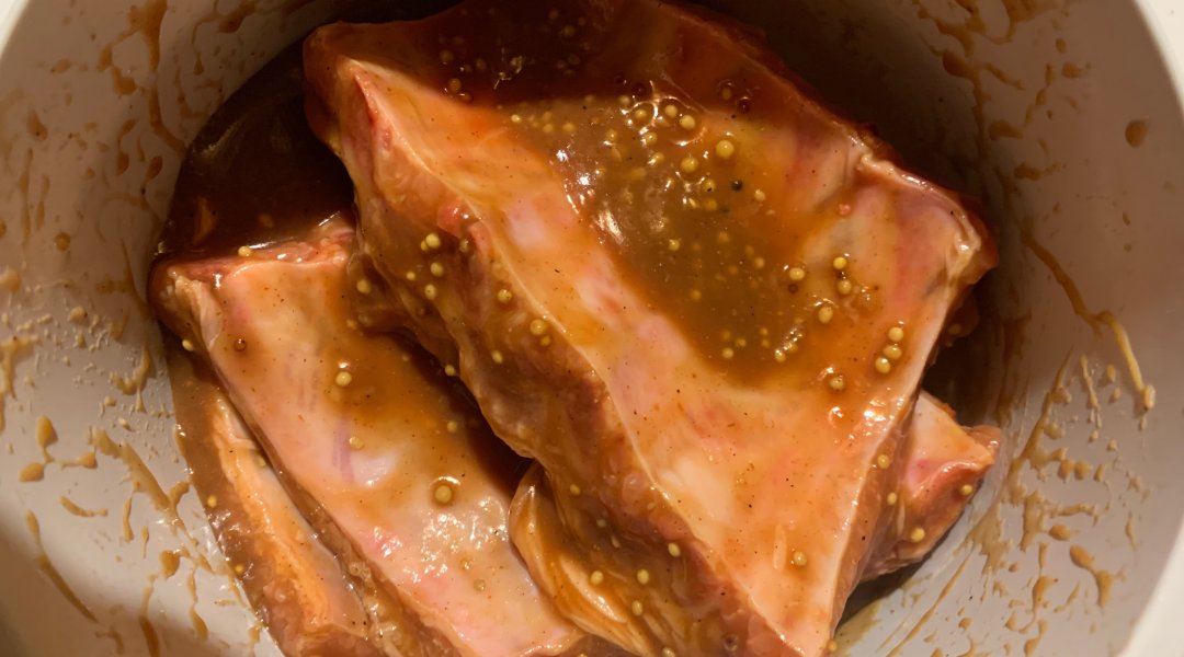 | Свинина, рёбра средней части с мясом, запечённые | 650 г |