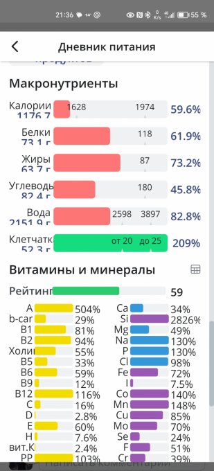 | Итого за день | 2730 | 1176 | 73 | 63 | 82 |