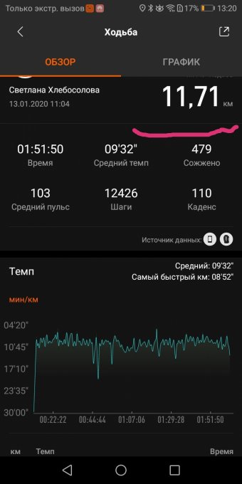 Ну вот и прошла свои 10км. После вчерашней пробежки что-то тяжеловато пришлось. И скорость меньше и пульс не удалось разогнать, так как идти быстрее просто не могла, ноги начинали заплетаться