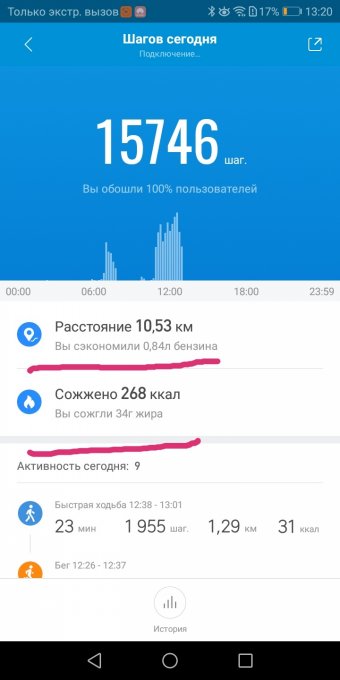 Калории опять же. За тренировку 479,а итого 269. Может кто знает, какая там система подсчёта? Очень любопытно.