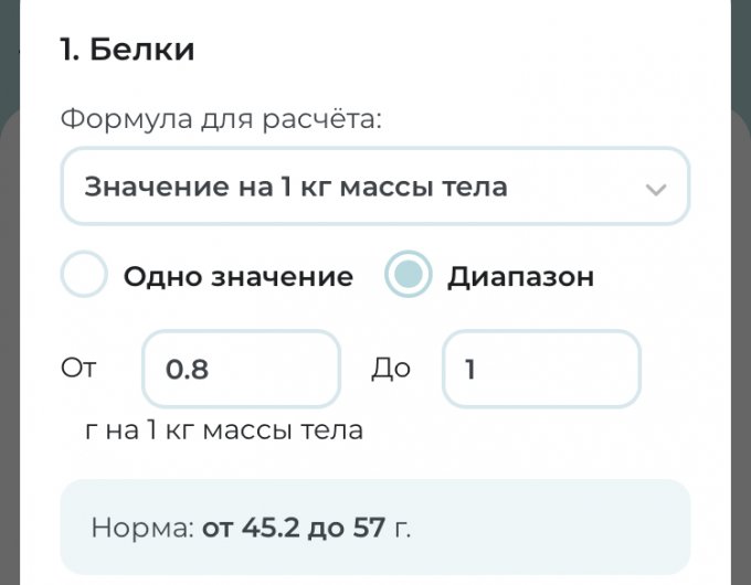 Белки выставляю на 1 кг веса тела - диапазон от 0,8 до 1.