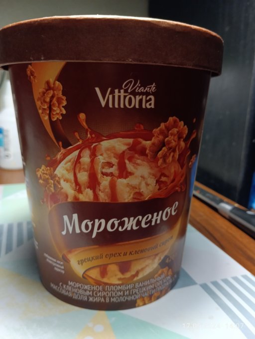 | Мороженое пломбир ванильный с кленовым сиропом и грецким орехом [Viante Vittoria] |