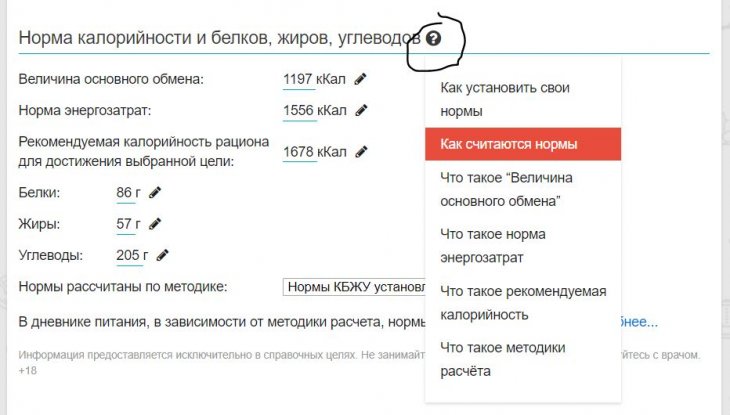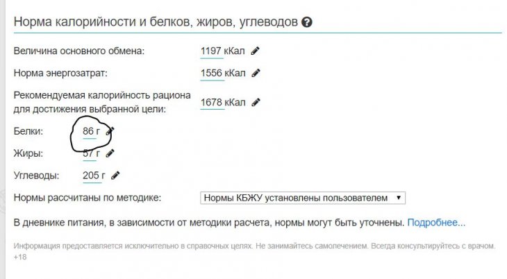 например, сайт вообще высокие нормы выдает. А у меня калорийность
