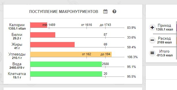 небольшой недобор, а жиры на 13 г меньше, зато перебор по