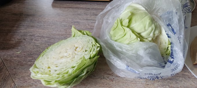 Добавить обычную капусту, пробить блендером до состояния каши ,