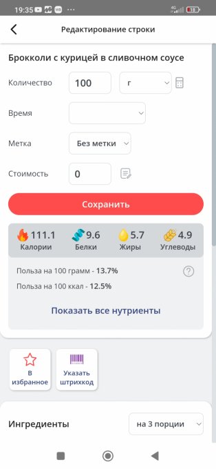 | Кол-во | Калории | Белки | Жиры | Углеводы | |