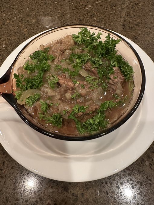 | Говядина, реберный край грудинки (шорт рибс), без костей, тушеная |