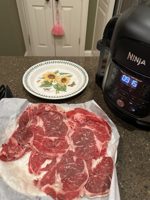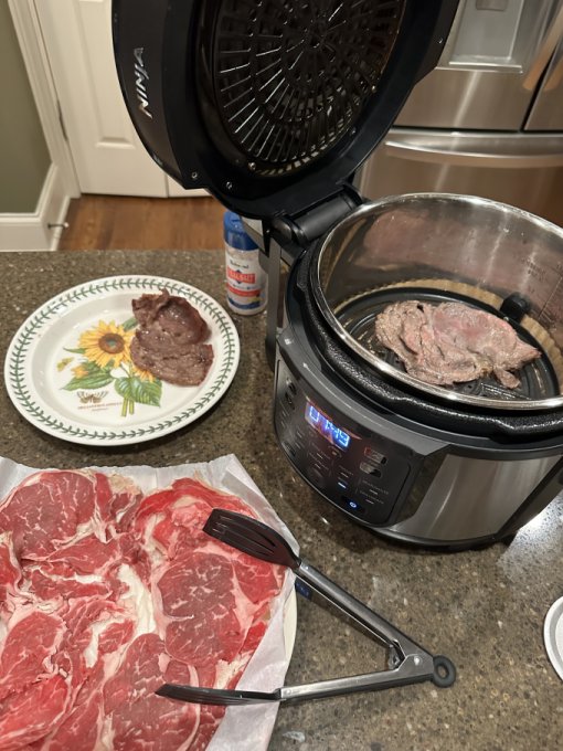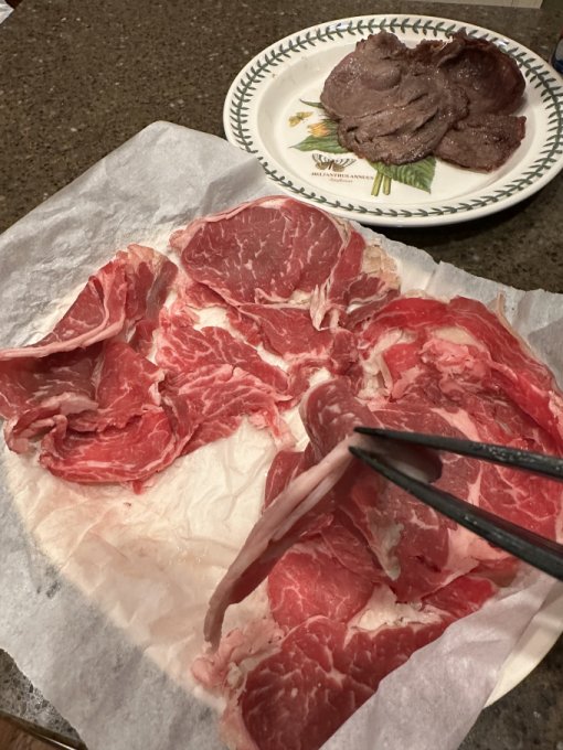 тонко порезанный тонкий край ( ribeye ) на гриле, по 1 минуте