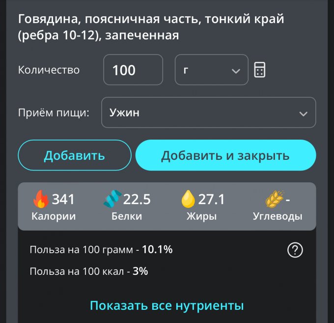| Говядина, поясничная часть (тонкий край) |