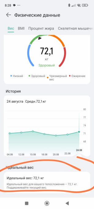 Весы зафиксировали для меня идеальный вес, исходя из роста и