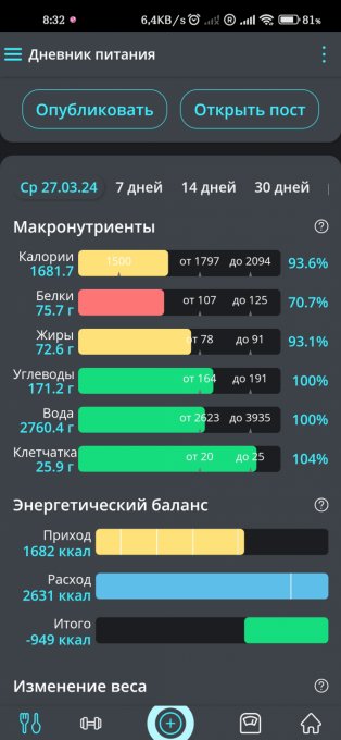 Я съела 1680ккал, прошла 16000 шагов, выпила 2,7л воды (чистой
