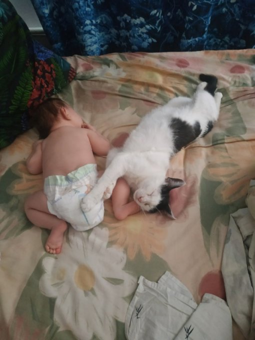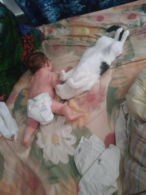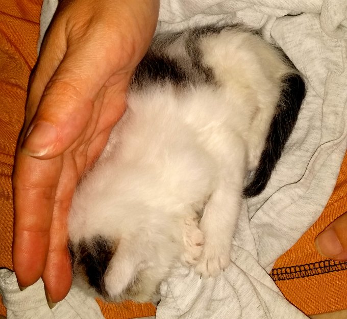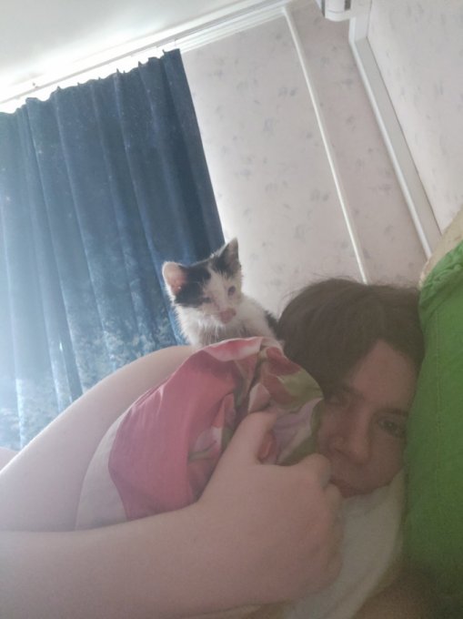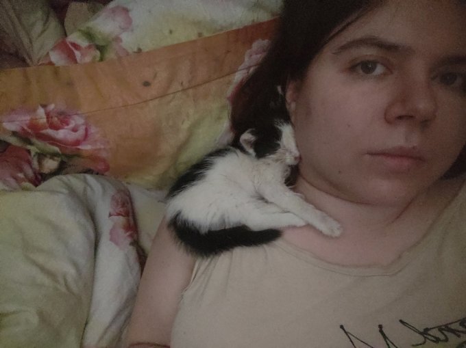 ее оставить там. Муж был на работе, так что этот котенок был без