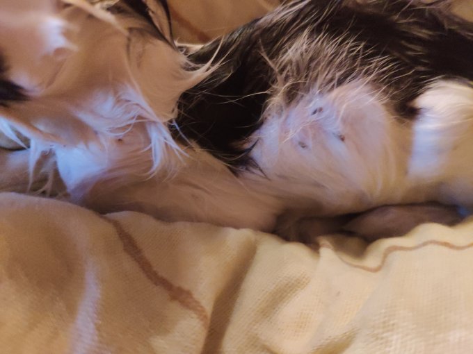 тряпочка, слизистые и уши белые, на ней роились блохи. Я не смогла