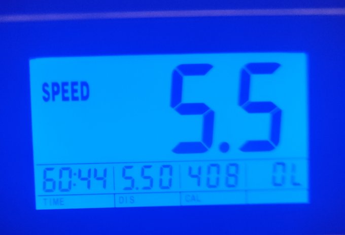 Прошла час на беговой дорожке из них 52 минуты на 7 уровне наклона.