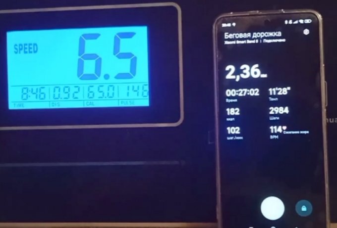 показывает 114. Я проверила на датчиках дорожки, пульс был 146.