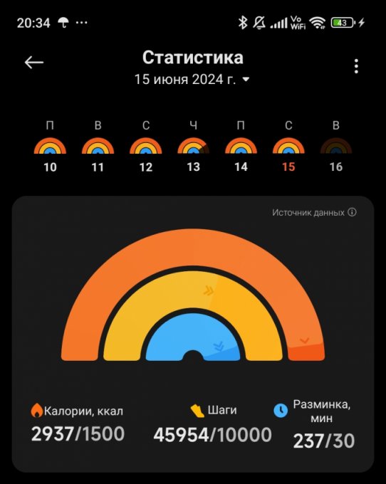 посчитал. Почти 46000 шагов за день) со временем тоже что-то не