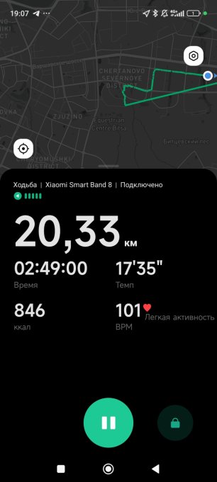Моя активность сегодня) тренировку пришлось отключить не окончив