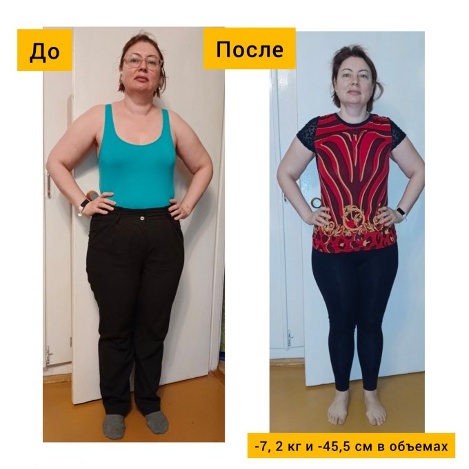 Какой же результат: -45,5 см в объемах, вес изменился не много