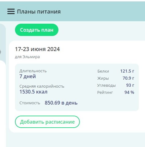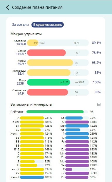 Чтобы увидеть отчеты по питанию и график веса, необходимо войти.