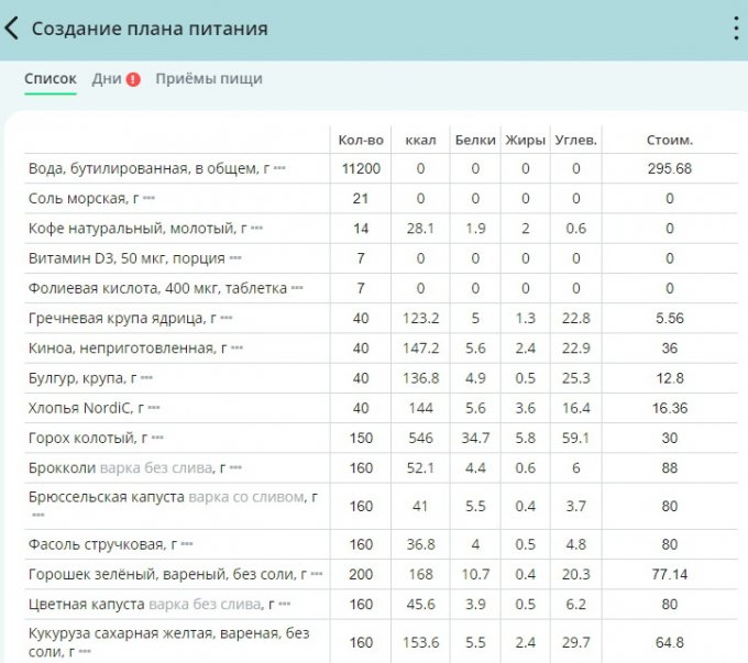 Рацион на сегодня готов, здравствуй новый день! Вчерашние посиделки в кафе и 2-кратный перебор в калориях надо сегодня компенсировать легким меню :)