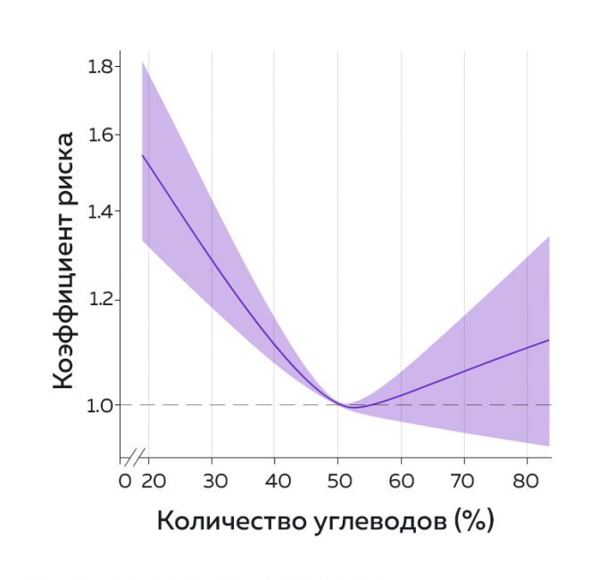 Начало получаться наедать углеводы в районе 50% суточного калоража. Несколько лет назад было исследование, в котором оценивалась смертность в отношении той или иной пропорции нутриентов. И, о чудо, оптимум для здоровья, долголетия и минимизации рисков был зафиксирован примерно на 50-55% рациона в пользу углеводов.