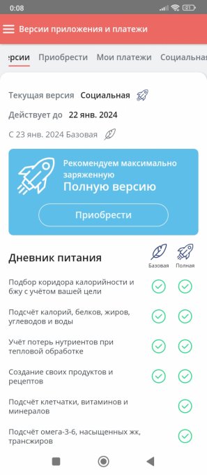И обратите внимание на социальную версию в конце. https://health-diet.ru/app/Payment2