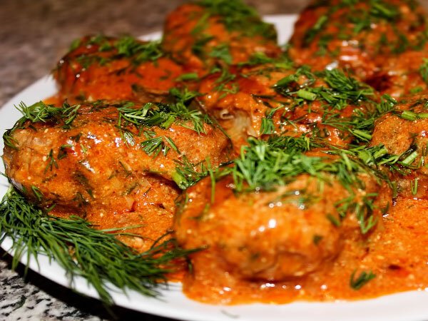 Для соуса смешиваем все ингредиенты и поливаем голубцы, готовим на