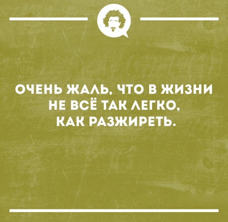 Joy Toy, старый знакомый! и вновь- здравствуйте! всегда с удовольствием и пользой читал ваши посты и комменты. Сейчас- не соглашусь- я банально разъелся, когда можно было себе отказать- лопал, когда нужно было отказать - вновь лопал, и днём и ночью. Да, беседовал с психологом, она мне сказала- Вы едите, потому что "заедаете что то,проблему, недовольство", отчасти и с ней согласен, но в первую голову - невосможность сказать себе СТОП, это проблема самоконтроля и характера, ИМХО. Ну да ладно, хватит самобичевания, худеем, возможно, это последняя попытка