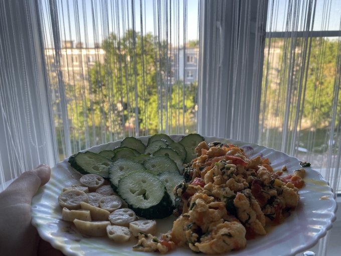 | Яичница с помидорами и зеленью |