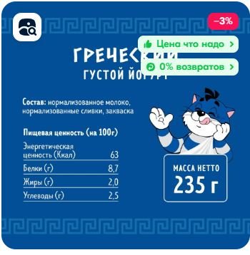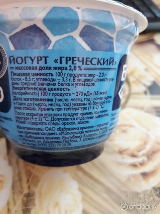 | Йогурт 3,25% жирности, 3,5% белка, натуральный |