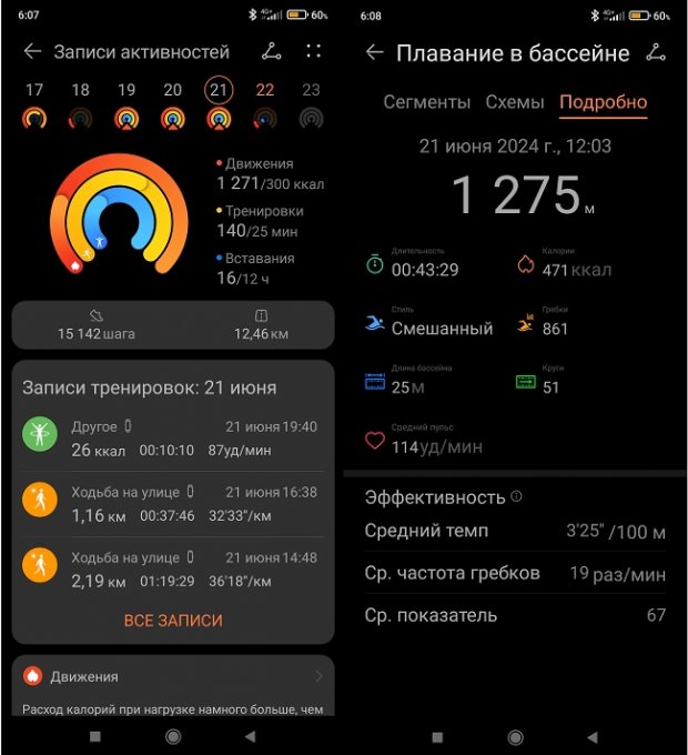 По тренировкам: 30 мин зарядка, 15 мин обруч, бассейн, 15100 шагов