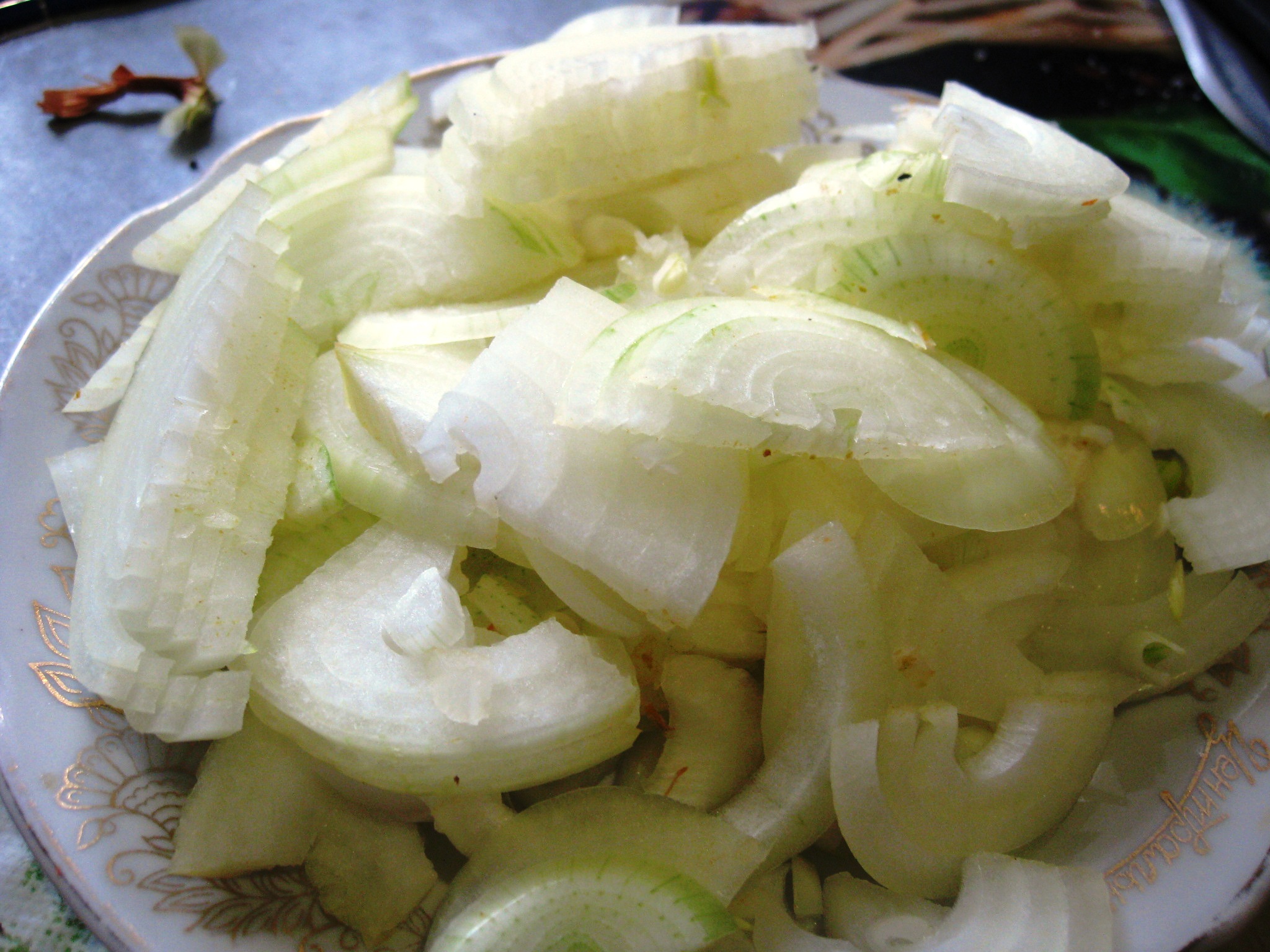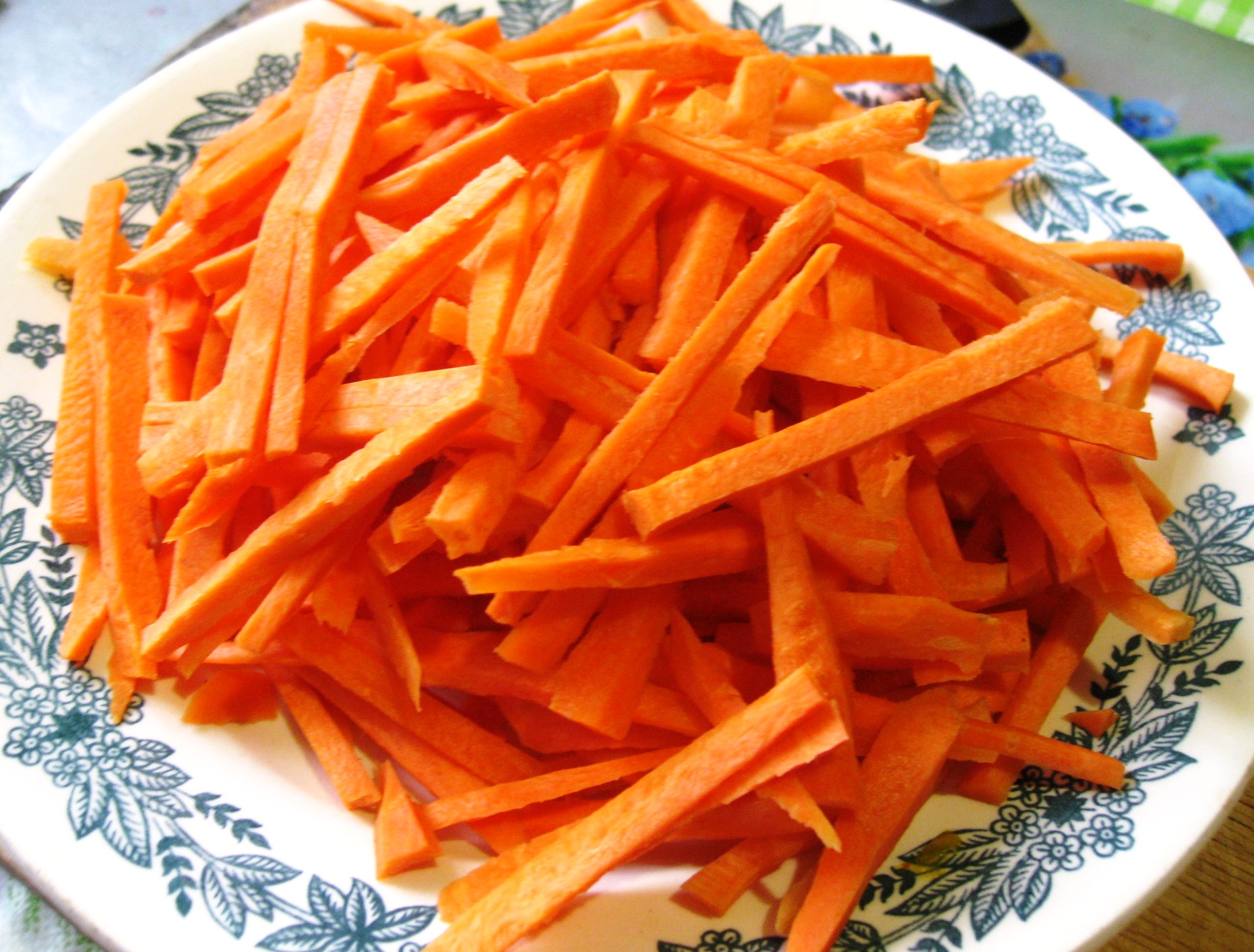Порезать морковь соломкой (можно потереть), лук полукольцами