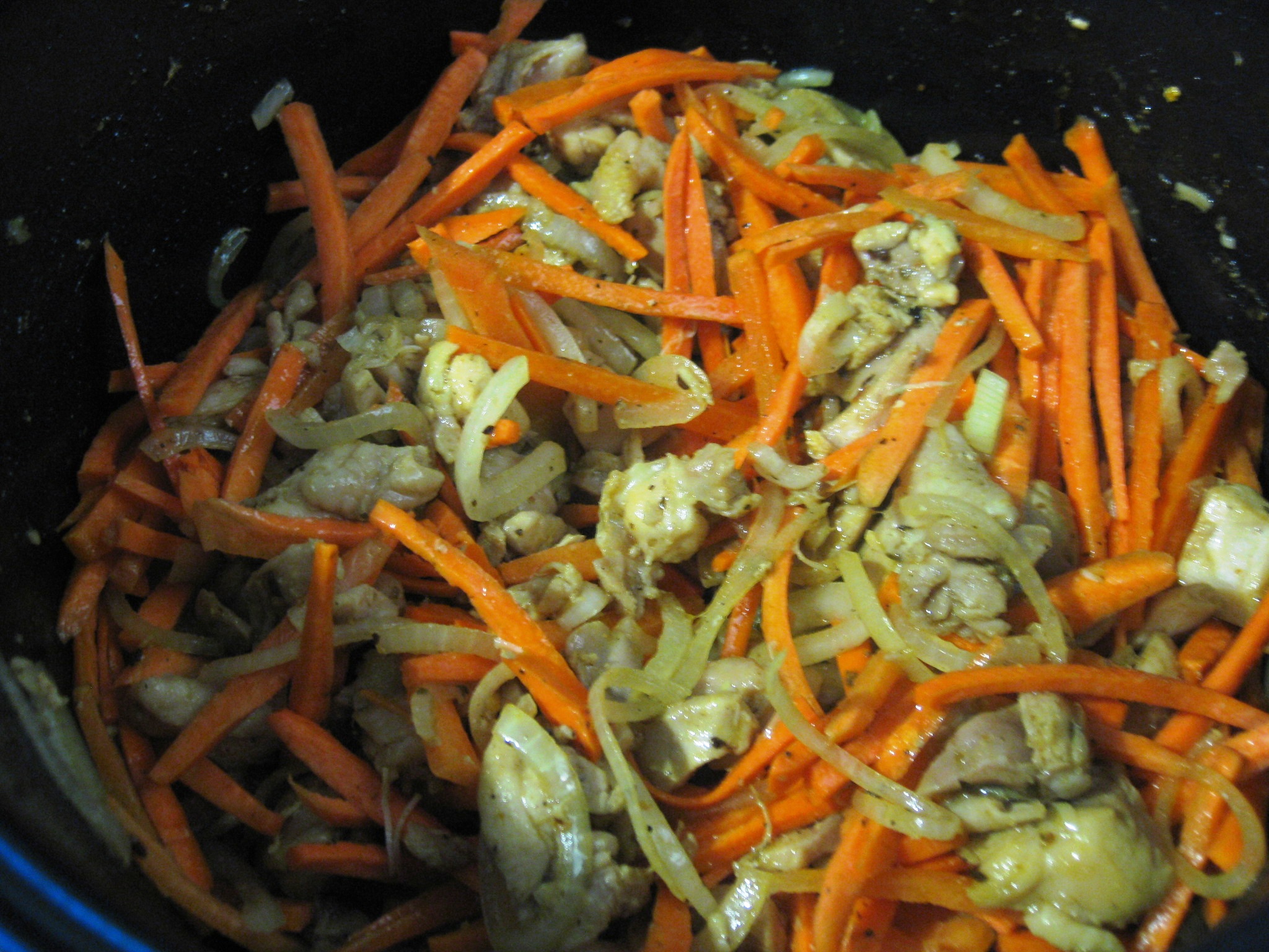 Положить лук и морковь и еще подержать минут 10 на режиме