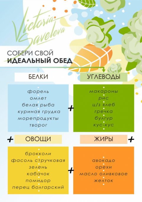 Хочу поделиться с Вами шпаргалкой составления полезного завтрака, обеда и ужина!