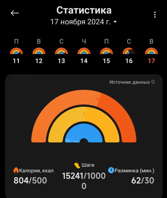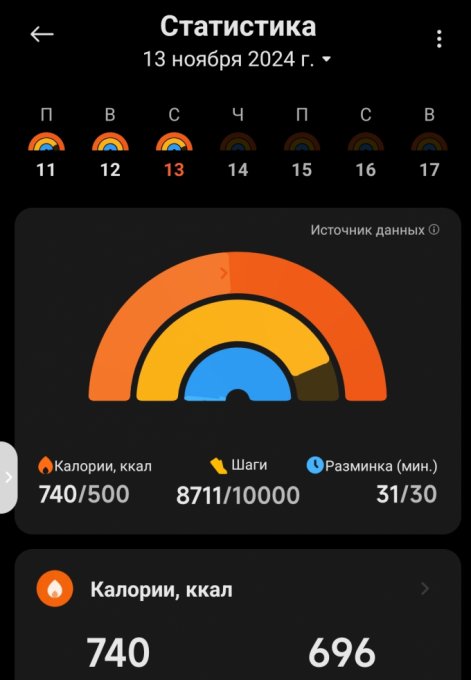 | Итого за день | 1850 | 1154 | 68 | 60 | 85 |