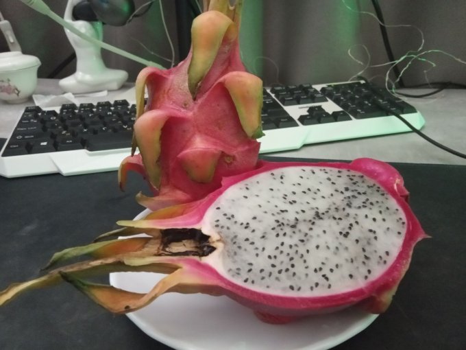В качестве сладостей шиканула и купила питахайю. В магнит из завезли по 450р. Один плод - на полкилограмма.