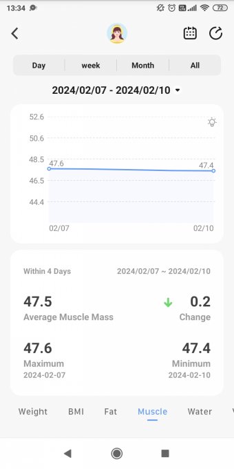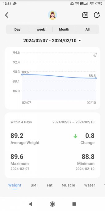 Я взвешивалась на умных весах, прогноз подтвердился :) - 0,8кг, из них 0,2 жирка, 0,2 мышц и, как ни странно, +100 воды )