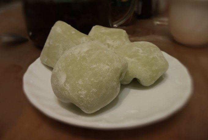 Пытаюсь делать моти. Третья итерация. В начинке - киви 🥝 Вкусно но непрезентабельно, тесто переварила