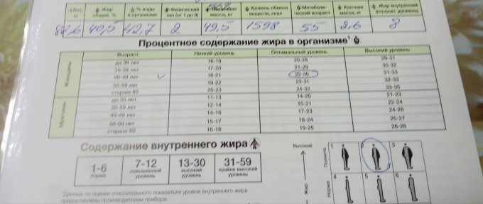 Полученные цифры, кстати, пугают. 10кг висцерального жира, и вообще жира 30 кг. А вот метаболизм совпадает с рассчитанным в МЗР.