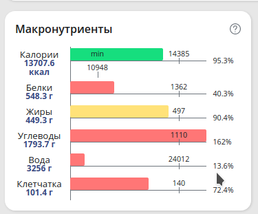 | Итого за день | 1050 | 1957 | 146 | 64 | 195 |