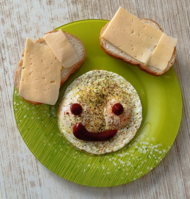 На завтрак сегодня были 2 яйца и 2 бутерброда с сыром