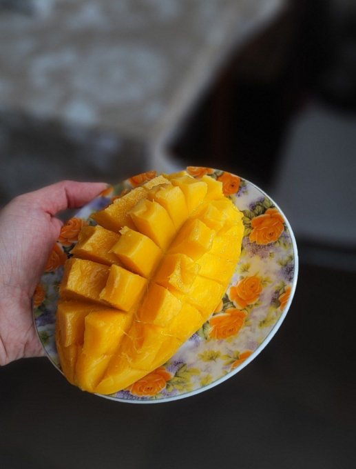 Где то через 3 часа мне захотелось чего то сочного именно фруктов из того что было дома взор пал на манго и это был чудесный перекус