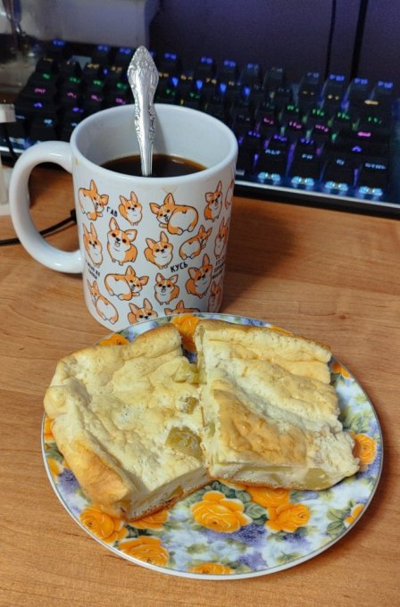 К пол девятому вечера я ещё не успела проголодаться но мне хотелось сладкого , по этому вместо ужина сделала себе кофий и взяла шарлотку которую заготовила вчера