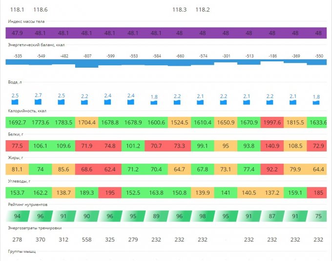 | Итого за день | 2787 | 1742 | 92 | 92 | 126 |